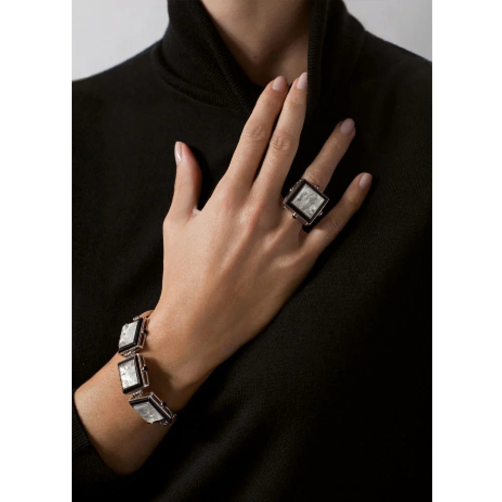The famous "Masque de Femme" motif reveals the face of a mysterious, elegant woman wearing a headdress of aquatic life, symbolizing the nymph Arethusa.